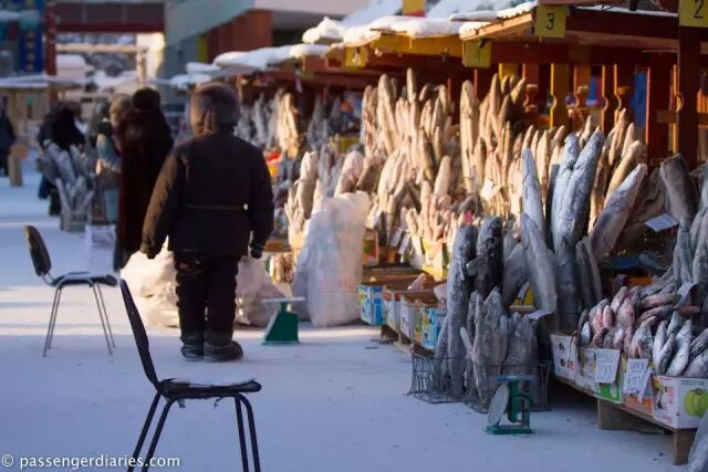 在雅庫茨克,生凍魚非常受歡迎,這是一種雅庫式的壽司,味道鮮美,可以做成很好的拼盤,在喝下一口伏特加後是很好的小食。