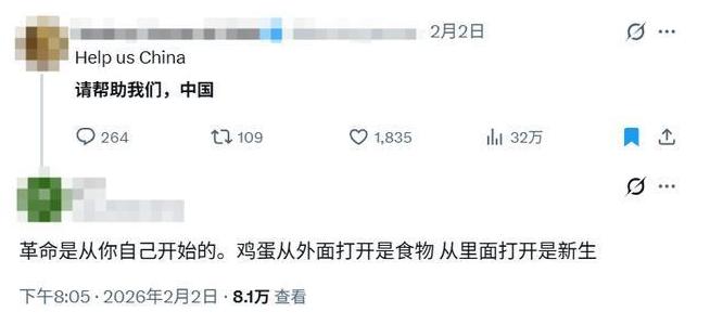 「革命是從你自己開始的。雞蛋從外面打開是食物,從裡面打開是新生。」